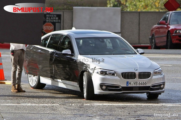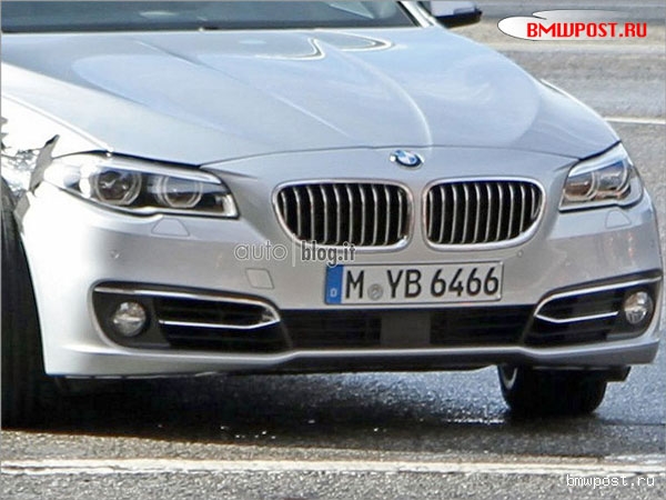 В объективы охотников за новинками попал обновленный BMW 5-й серии. Снимки, которые попали в руки фотографов, дают возможность оценить, как будет выглядеть передняя часть новой пятерки. Мы видим слегка изменённые фары и бампер несколько другой формы. В целом отличия заметны только ценителям марки. Что касается начинки то по слухам BMW 5-series получит несколько новых функций а так же новую линейку моторов. Возможно на «пятерке» появится двигатель, который сможет достигать максимальной мощности в 445 лошадиных сил.